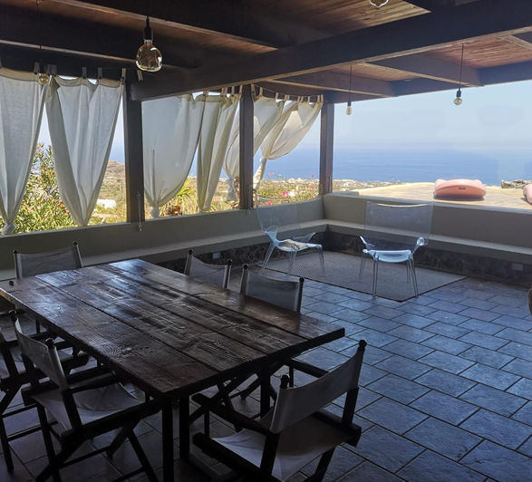 All'esterno una enorme terrazza coperta fronte mare, arredata con tavolo per il pranzo al riparo dalla canicola estiva, un'ampia zona prendisole attrezzata ed una minipiscina idromassaggio, permettono agli ospiti del Dammuso Calipso un soggiorno rilassante nel silenzio pantesco, con il mare all'orizzonte. Indugiare, pigramente, il vero lusso di questo angolo di mondo