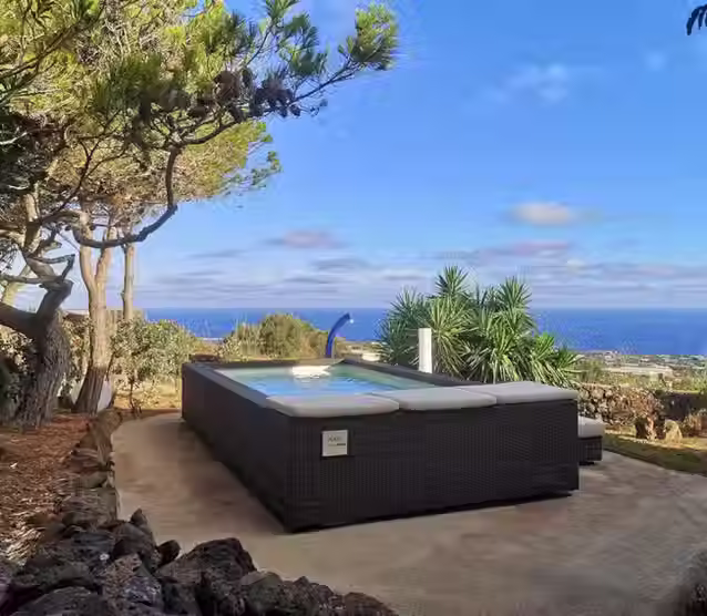 Davanti agli occhi solo l'azzurro del cielo e del mare di Pantelleria che si fondono all'orizzonte e che i nostri ospiti potranno godere immersi nell'acqua, coccolati dalle bolle dell'idromassaggio.